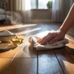 Humidifier ducts and corners: Set a shallow dish of warm vinegar inside the empty tank compartment, reassemble the cover, and let it sit for two hours. The trapped acidic humidity softens scale lines so a subsequent water flush removes them. Never run vinegar through ultrasonic elements unless the manufacturer explicitly allows it.